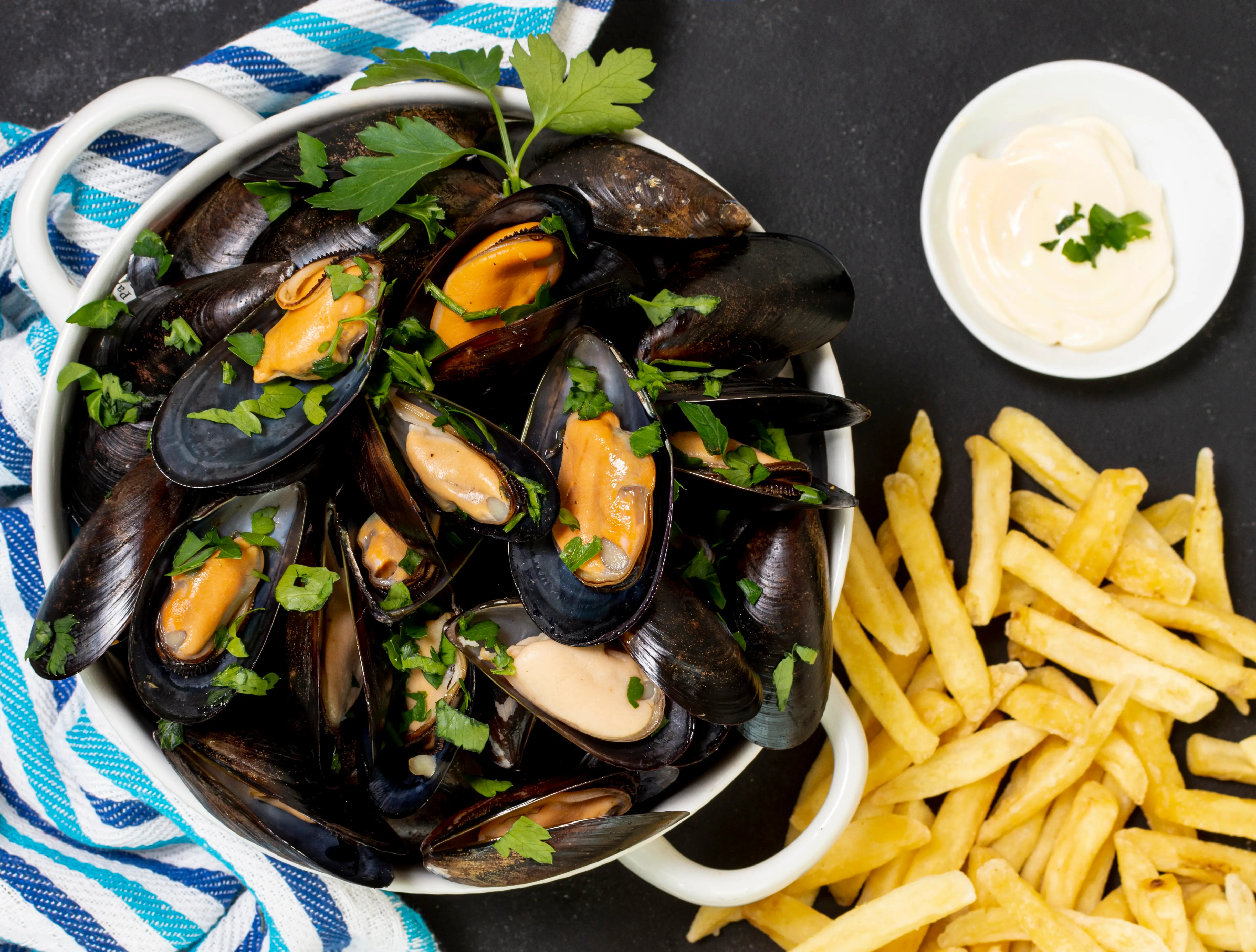 Moules frites à volontéAll-you-can-eat mussels & friesMosselen met friet à volonté